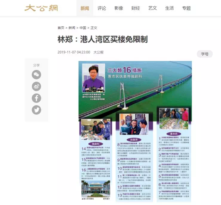 这16条措施中,香港居民在大湾区内地城市购房不再需要居住及社保年限备受舆论关注。