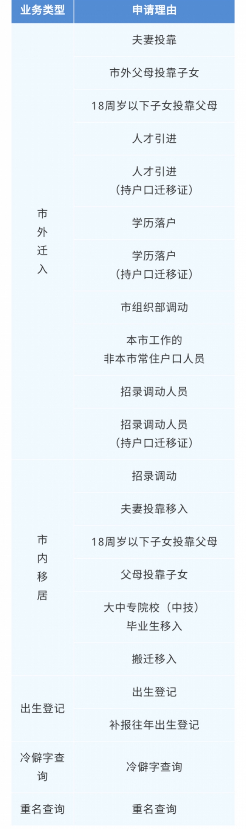 答:出生登记、市外迁入、市内迁移、项目变更、身份证换补领等高频户籍业务均已实现全城通办。具体业务和全市户籍窗口分布情况详见下表。
