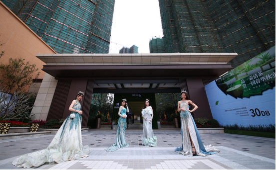 位于精美高楼,秀美园林中的销售中心前,红色巨大的屏幕彰显雍容与华贵,进场的红毯营造出销售中心绽放的喜气,现场座无虚席,热闹非凡。