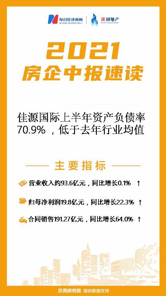 8月25日晚间,佳源国际(02768.HK)发布2021年中期业绩公告显示,期内实现营业收入约93.6亿元,同比增长约0.1%;公司毛利率为32.0%,较上年同期减少5.4个百分点,超过2020年行业平均毛利率(26.7%)5.3个百分点;归母净利润约19.8亿元,同比增长22.3%,超过2020年行业平均归母净利润增速(-17.8%)40.1个百分点。