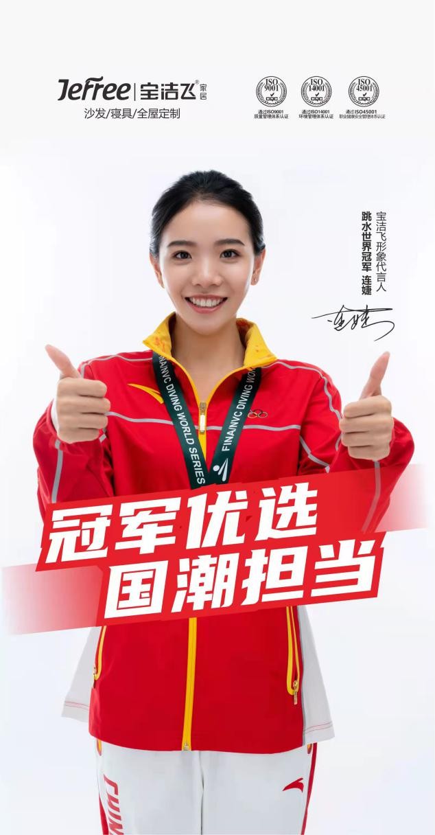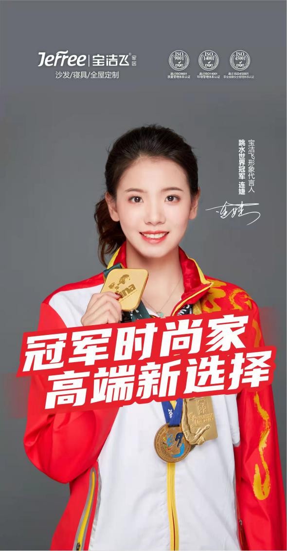 为助力品牌影响力的全面提升,激发企业更强大的创造力,近日,宝洁飞家居正式签约世界跳水冠军连婕作为品牌的形象代言人。以创新、品质和服务缔造冠军产品。
