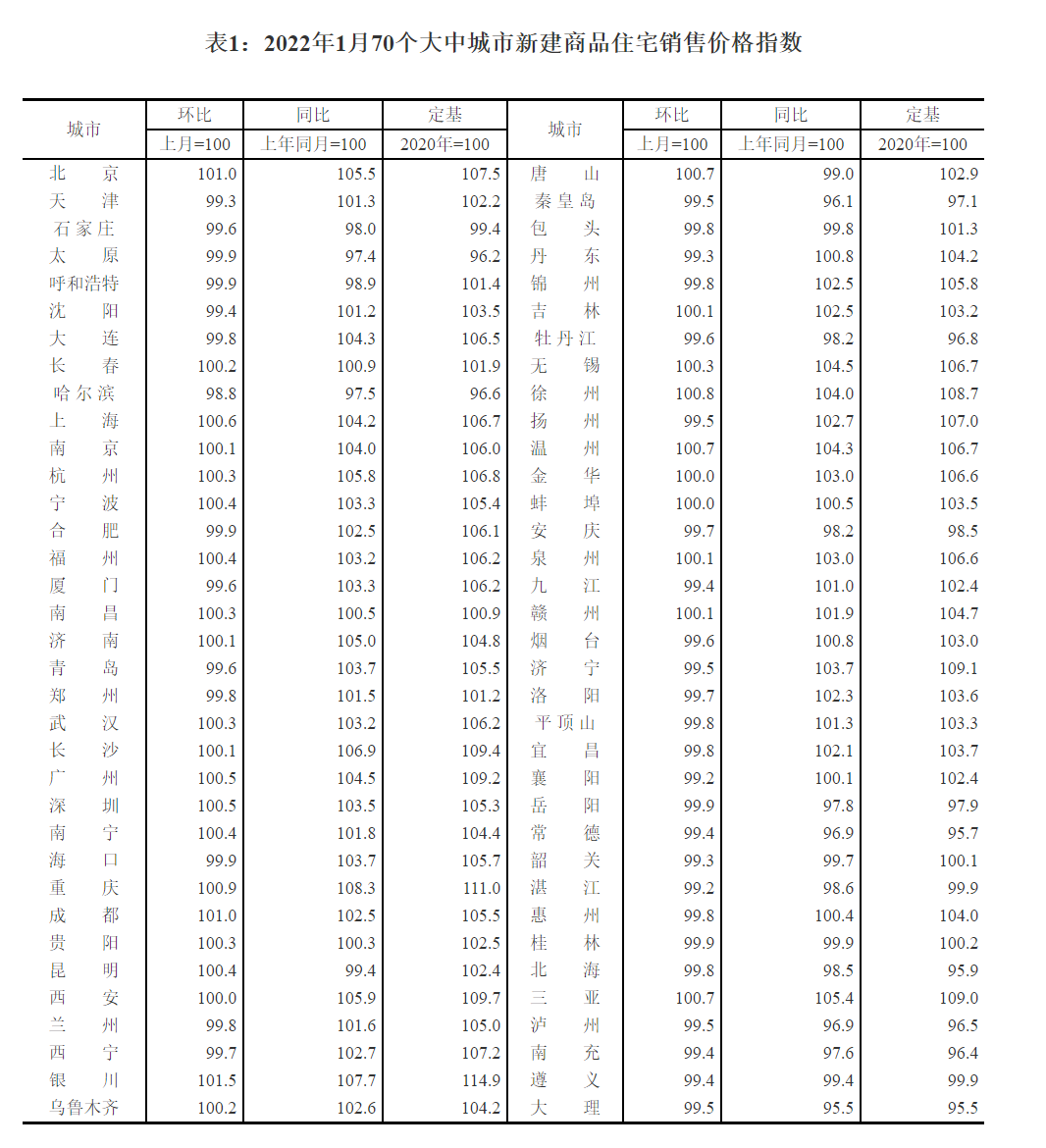 国家统计局城市司首席统计师绳国庆解读2022年1月份商品住宅销售价格变动情况统计数据