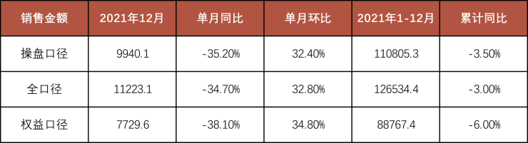 2021年1-12月百强房企业绩表现及同比变动(亿元)