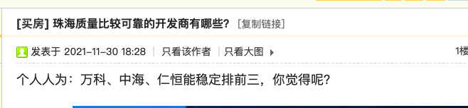 日前拼房帝在珠海本地论坛发布一则评选良心开发商的帖子,引来不少回响