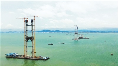 “双塔”封顶矗立伶仃洋 深中通道伶仃洋大桥进入上部结构施工