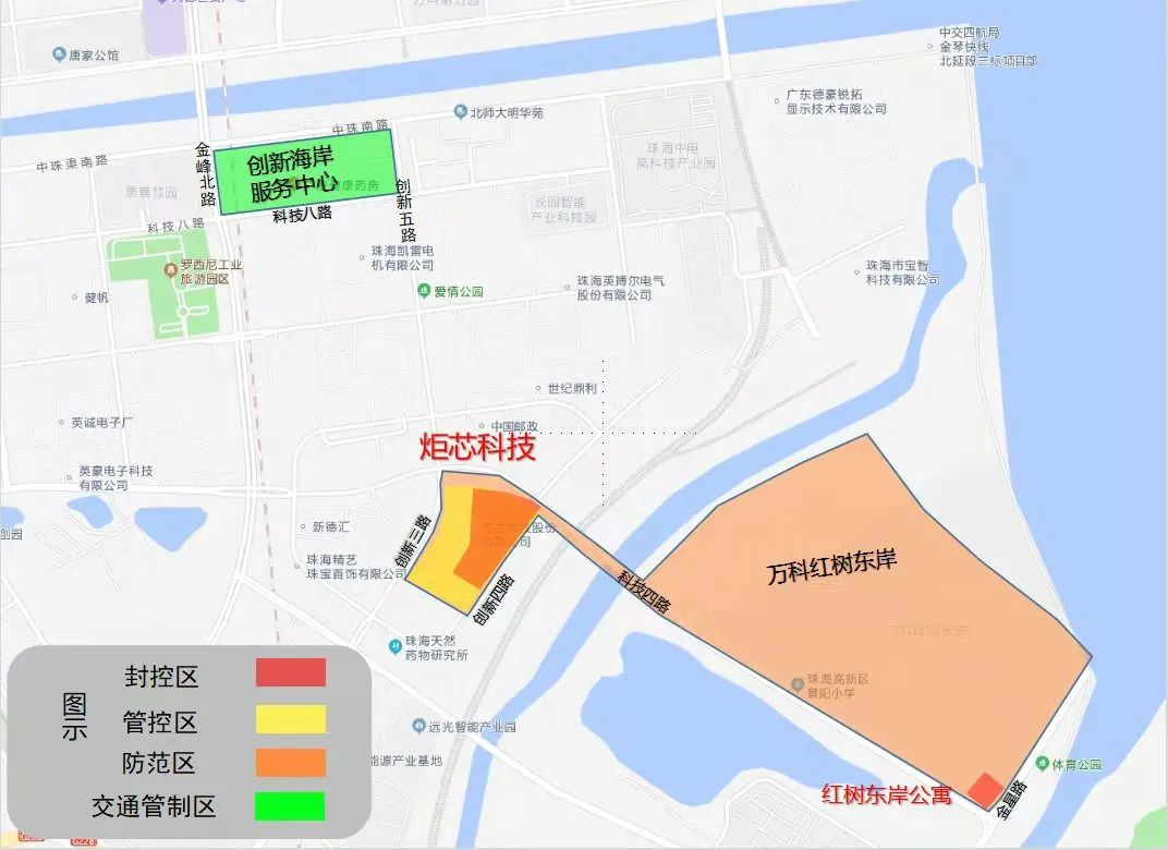 唐家湾镇科技四路交创新三路以南段,万科红树东岸小区(除封控区外)实行“强化社会面管控、严格限制人员聚集、两点(居住点-工作点)一线、非必要不外出”管理措施。