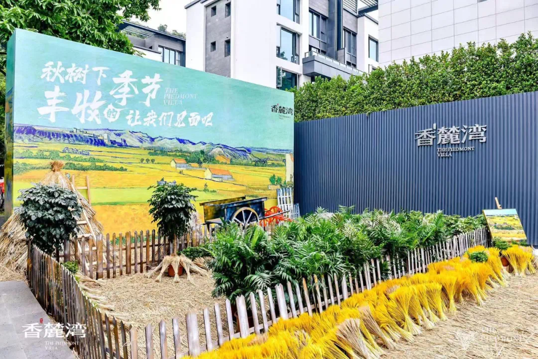 香麓湾以印象派大师梵高的画作《丰收》为灵感,在现场打造了一个大型麦田美陈布置,优质复刻了梵高画作。参与活动的来客可以走近“画作”,成为“风景”里的一部分,感受丰收的喜悦。