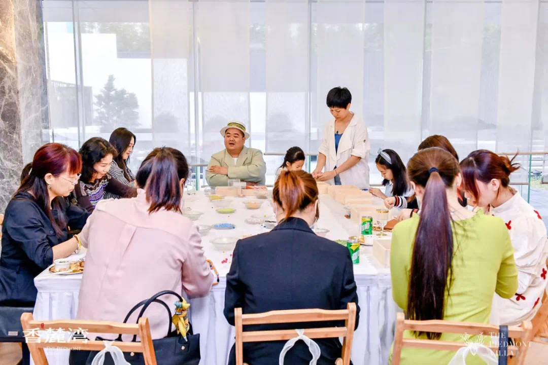 活动分为草坪野餐区及内场区,同样做了精致的英伦田园风布置,来宾们在充满爵士风情的音乐中,玩串珠、做手工花环、品鉴威士忌酒,品尝由米其林三星大厨阿ken以及他的团队带来的梵高主题式canape餐饮,这也是排名前列次在珠海看到这种形式的自助餐品。