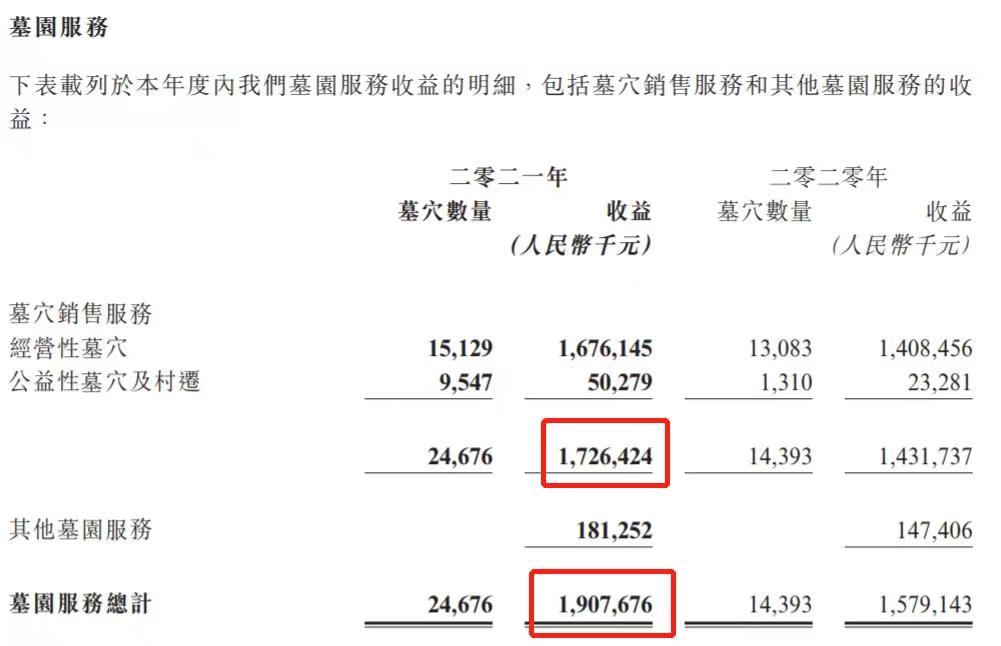 福寿园称,2021年公司的经营性墓穴销售服务收益较上年度增加约2.68亿元或19.0%,其中销售数量增加2046座或约15.6%,平均销售单价增加约2.9%。