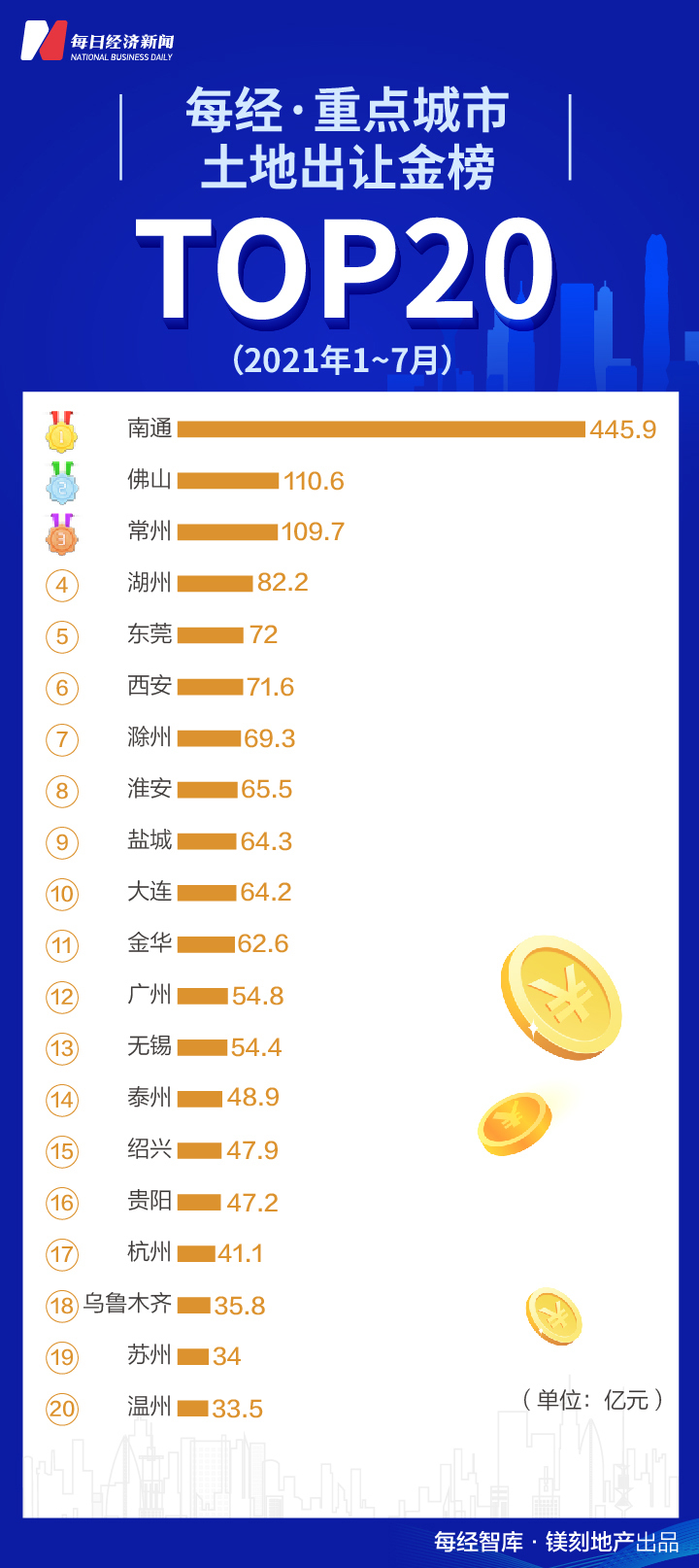 7月份,全国土地成交总量环比走低。其中一线城市成交降幅较大,一线城市仅上海、广州上榜,且排名较低。