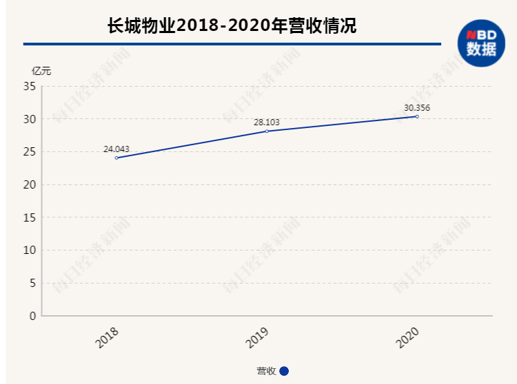 从近三年的营收看,长城物业走出逐年增长趋势,2018-2020年,其收入分别为24.043亿元、28.103亿元、30.356亿元,三年对应的整体毛利率分别为17.0%、18.3%、21.0%。