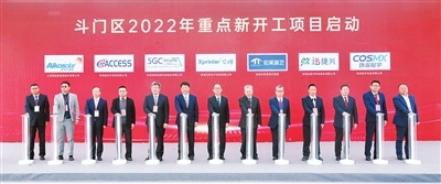 当日上午,斗门富山工业园爱旭太阳能电池项目1100亩的现场热闹起来,斗门区2022年重点项目集中签约暨开工仪式在这里举行。