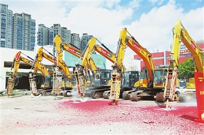 当天的拆迁仪式现场人声鼎沸,锣鼓声中龙狮起舞,到处喜气洋洋。上午10时许,拆迁仪式启动后,多台挖掘机同时开始作业,现场井然有序。