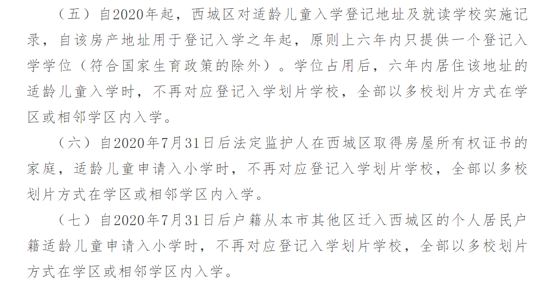 自2022年起,所有用于九年一贯制学校登记入学的住房,九年内只提供一个入学学位(符合国家生育政策的除外)。”相比之下,西城、东城的入学政策符合此前预期。