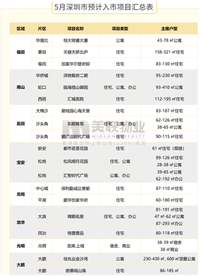 不过据各机构统计预测,五六月份深圳或将迎来新房供应爆发期。美联物业全国研究中心统计,保守估计深圳5月将有19个项目集中入市,而住宅公寓供应大户仍为龙岗区和宝安区。