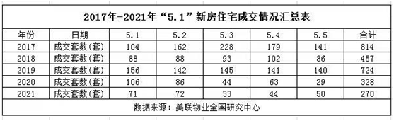 据美联物业提供给《每日经济新闻》记者的一组近五年深圳“五一”假期的成交数据显示,深圳假期高峰成交在2017年,为817套,其次是2019年的724套,而今年“五一”假期成交数据为270套。