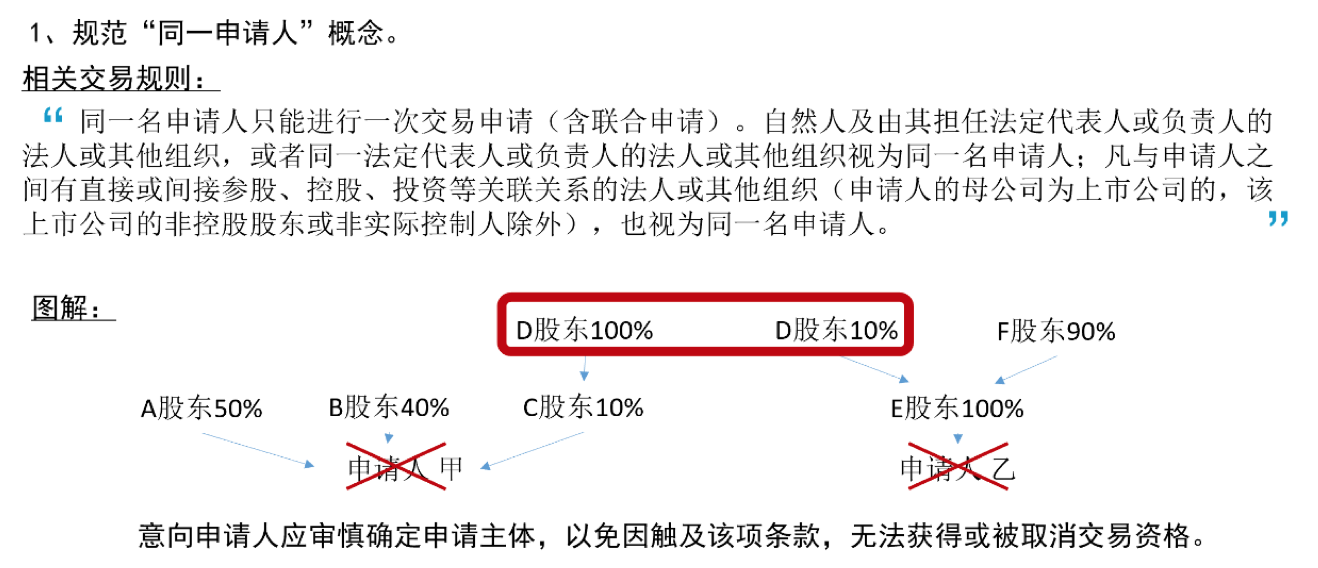 (“同一申请人”概念的规范,图片来源:上海土地市场官网)