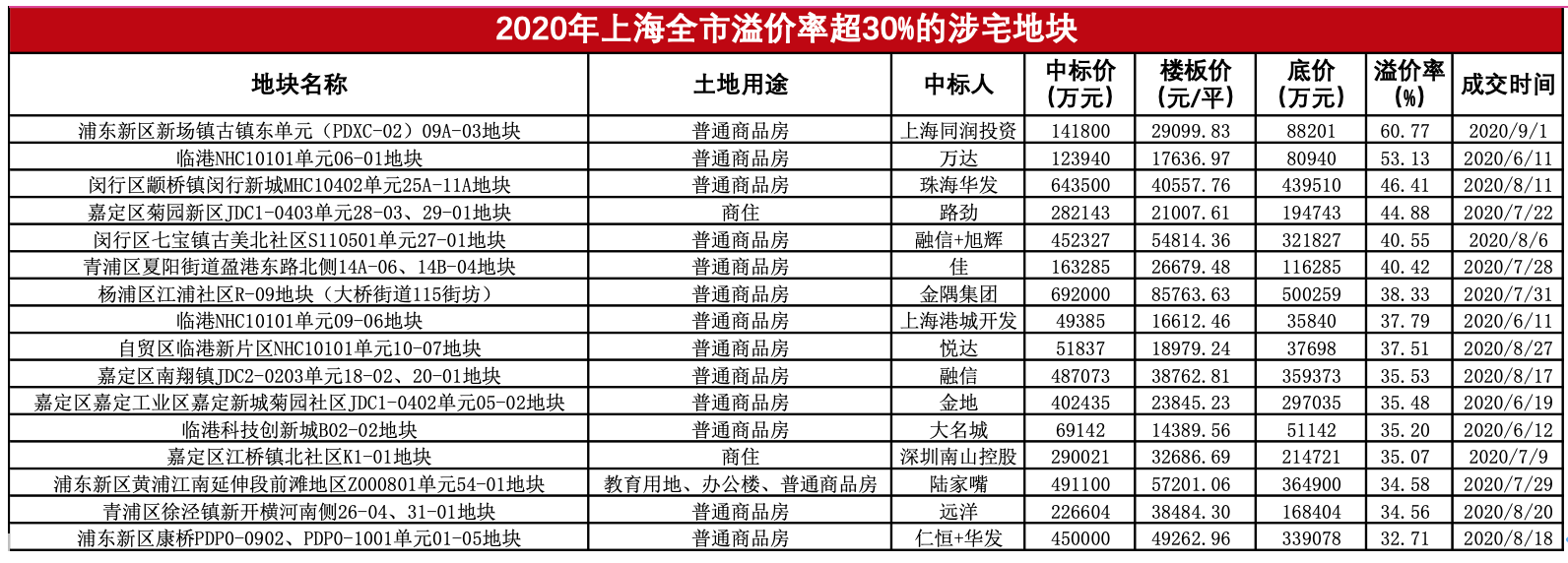 附:2021年4月30日上海排名前列批集中供地表(来源:上海土地市场官网)