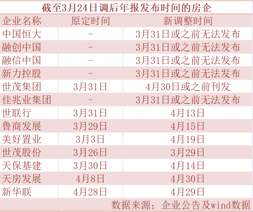 “各个资本市场对于发布年报的时间是有强制性要求的,延期发布年报需要合适的理由。”柏文喜认为此轮多家房企密集宣布延迟发布年报的情况比较反常,在以往较为少见。