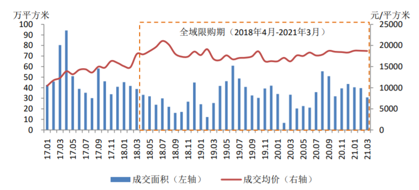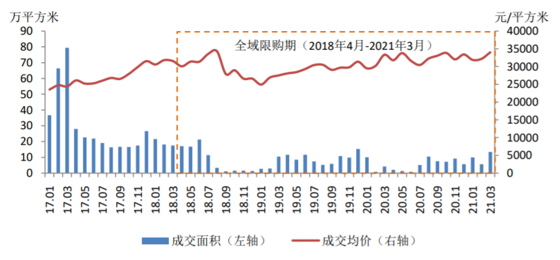 《报告》显示,从海口新建商品住宅成交数据看,今年一季度海口新建商品住宅成交面积为111万平方米,而2018-2020年同期分别为126、62和74万平方米;三亚在全域限购后,2018年9-12月的单月成交数据仅为1万平方米,但2021年3月成交面积达到13万平方米。