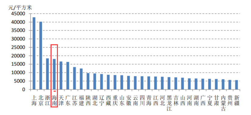升温反映在房价上。易居研究院根据国家统计局公布的数据计算显示,今年一季度海南新建商品房价格为18124元/平方米,在全国31个省(区、市)中,排名第四,仅次于上海、北京和浙江。