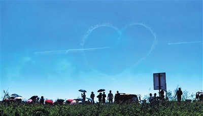 “真没想到能亲眼看到‘红鹰’飞行表演队如此浪漫的表白,这是他们本届航展排名前列次进行这个表演。”连续跟拍多天的摄影爱好者张先生兴奋地告诉记者,这个动作太有爱了,“我觉得这是当天飞行表演较大的彩蛋!”