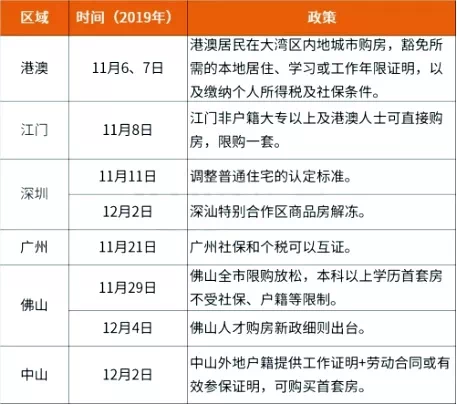 而今,这个被万众期待的世界湾区,终于稍稍敞开了它的大门,从2018年底开始,大湾区内包含广州、深圳、珠海、香港、澳门等城市,在购房政策上逐步宽松。以珠海为例,2017年全市均为限购区域,住宅须不动产权证满3年后才能交易,而2018年底,政策逐渐松动,非珠海本市户籍人才,购房需5年的社保要求降为1个月、3个月、1年不等;再以珠海未来副中心金湾为例,购房政策罕见的全面放开,非珠海人群(外地、港澳户口等),无需社保或人才证明,就可购置新房和二手房……