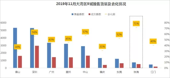 而珠海楼市的火速升温,也得到了数据支持。数据显示,得益于政策和规划的利好,珠海楼市在上个月去化破七,达到71%的去化率,遥遥先进于湾区其他区域。