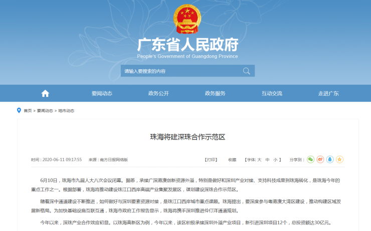 在珠海市第九届人大八次会议上,市长姚奕生在做政府工作报告时表示,今年珠海将推动建设珠江口西岸高端产业聚集发展区,谋划建设深珠合作示范区。珠江口西岸,所在范围正是唐家。