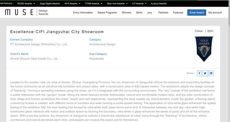 全球创意设计领域较具影响力的国际奖项之一,创办于美国纽约,由历史悠久的国际奖项协会International Awards Associates(IAA)主办。