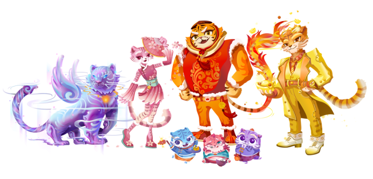 2022年适逢中国农历虎年,为不断挖掘文旅融合内涵,增添市民游客旅游新体验,横琴创新方与王之纲团队再度联袂合作,围绕“一虎百应”的主题,将“火尾虎”形象进一步延伸,创作出全新的“健康虎”、“姻缘虎”、“财运虎”、“梦幻虎”全新角色,5虎齐聚,组成别具新年特色的“福虎家族”将在这个新年与游客见面。