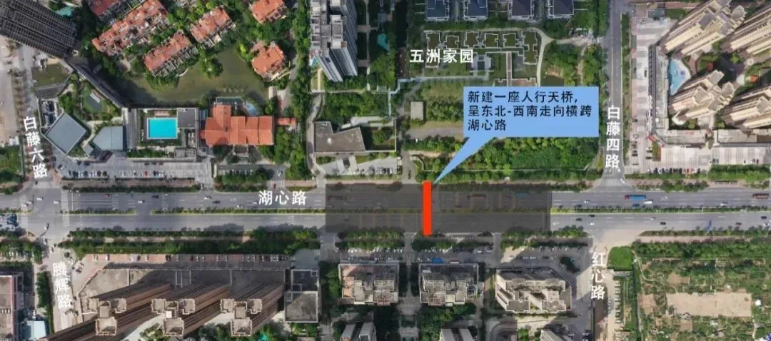 为进一步解决湖心路两侧居民安全过街,《斗门区城区拥堵治理方案》明确,将在江山汇和五洲家园处各新增一座人行天桥。