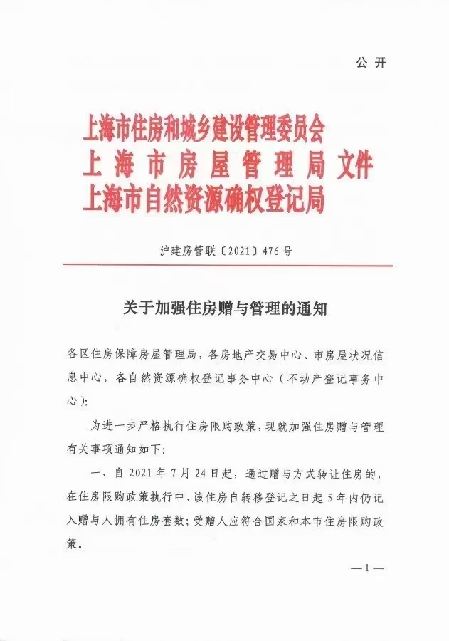 已经实施!上海将住房赠与行为纳入限购范围