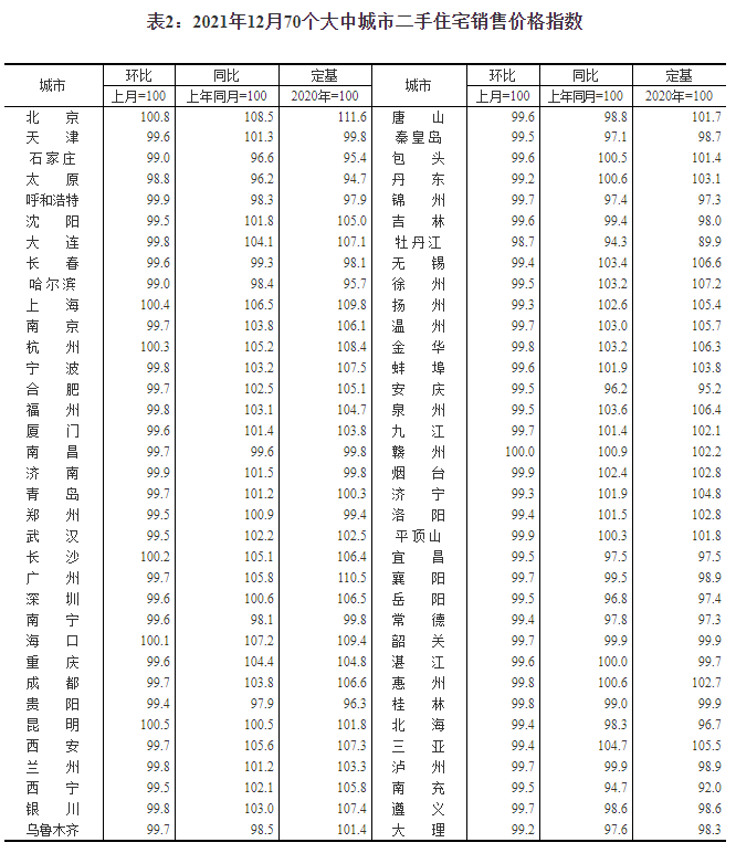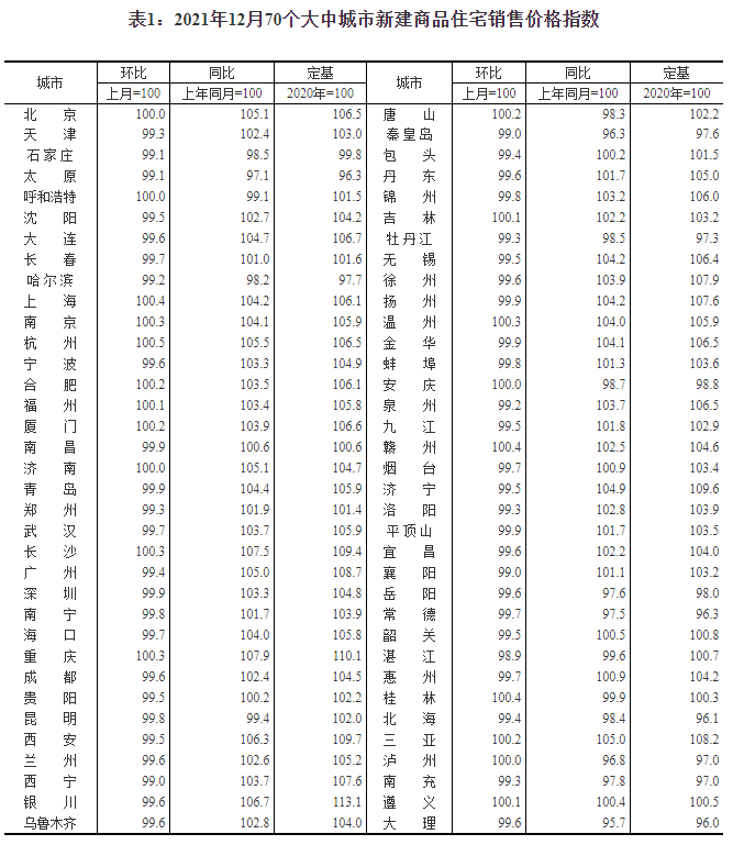 1月15日,国家统计局发布2021年12月70个大中城市商品住宅销售价格变动情况。