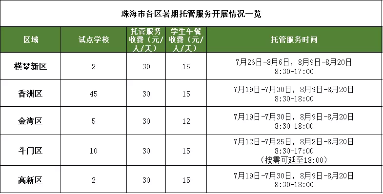 暑期托管服务方案公布!珠海各区试点学校、收费……