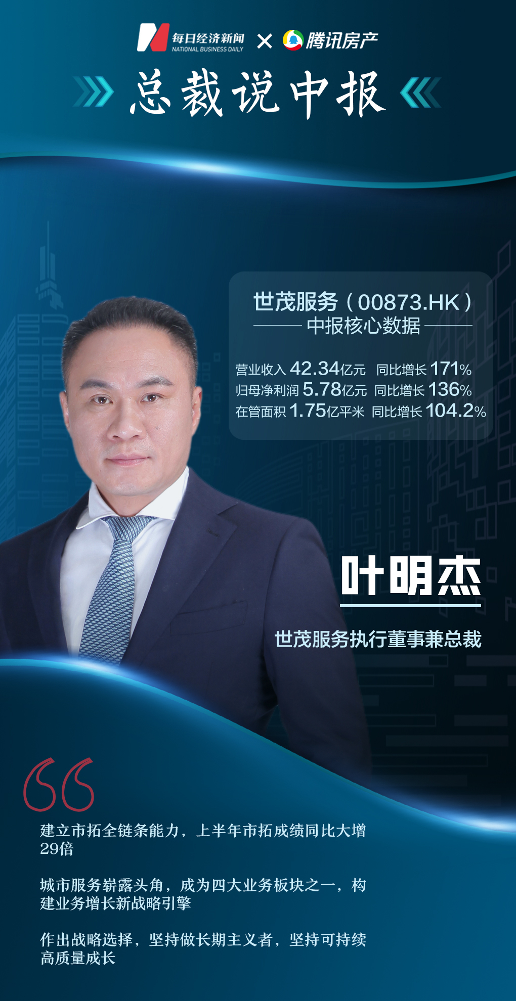 “主要还是在运营能力层面的大幅提升。” 谈到上半年业绩,世茂服务执行董事兼总裁叶明杰如是说。