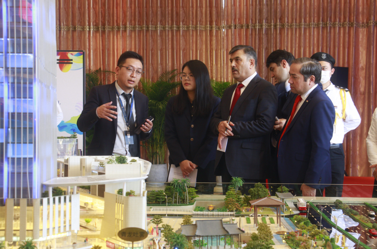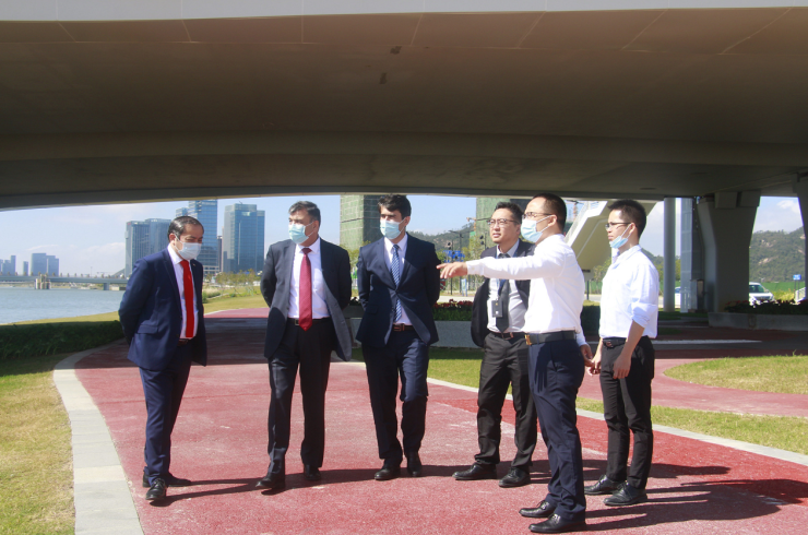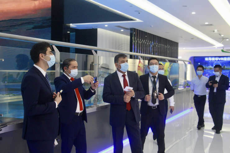 11月22日上午,塔吉克斯坦共和国特命全权大使萨义德佐达·佐希尔·奥佐德和副大使穆哈默德·叶尕穆佐德在横琴政府领导、钜星汇项目领导的陪同下,参观了横琴的规划展厅和横琴口岸、天沐琴台等重要工程项目,对横琴的发展现状与规划表示充分肯定。尤其在横琴规划展厅对比10年前的照片时,大使们对横琴的发展速度感到震撼,并对横琴整体城市规划及产业布局给予高度肯定。特别地针对中医药产业,塔方盛产高山无污染中药原材料4000多种,结合横琴的研发,展销,包装,推广能力希望互通有无,共同发展。
