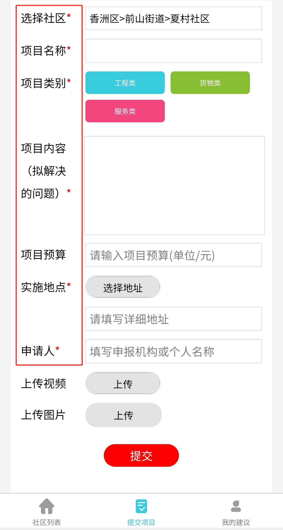 填写相关的项目信息并提交。