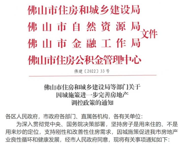 4月26日,佛山住建局内部发布《关于优化存量商品住房政策的通知》。