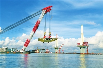 平稳落梁! 珠海金海特大桥鹤洲侧边跨钢梁合龙
