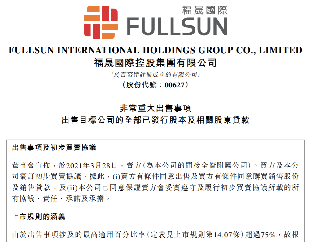3月29日,福晟国际曾发布公告表示,公司股份于当天上午9时正起短暂停止买卖,以待刊发有关公司非常重大出售事项的内幕消息。筹划半年多的重大资产出售计划终于在大幅降价后终于找到了买家。
