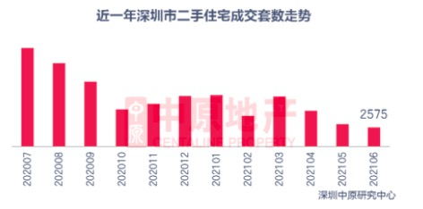 数据显示,6月深圳二手住宅过户套数为2575套,环比下滑15%,同比减少76%。上半年二手住宅共成交28442套,同比大跌35.4%。