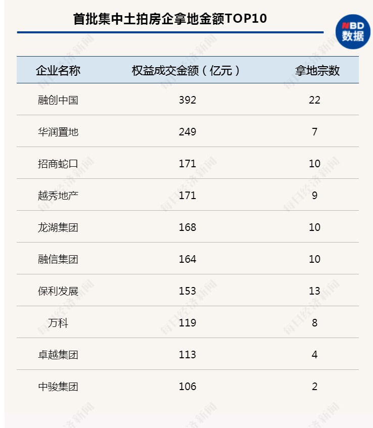 如在无锡、杭州的集中土拍中,头部房企因为资金和运营优势,在这两个城市的成熟板块频频出手拿地,而中小房企则纷纷在郊区抢占地盘,或通过组团参股方式“分一杯羹”。