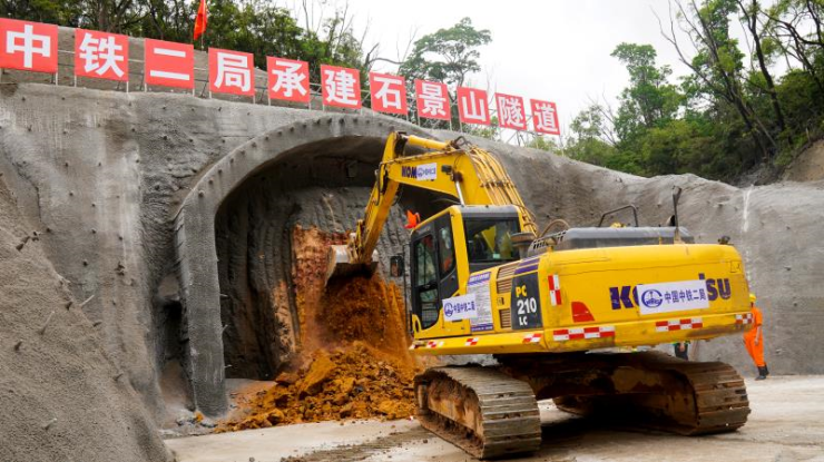 上月,兴业快线(南段)一标段工程石景山隧道北端新增斜井顺利开钻,