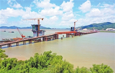 日前,记者在施工现场看到,作为鹤港高速二期关键控制性工程的鸡啼门特大桥主航道桥已全面进入上部结构施工阶段,44号主墩、45号主墩均在进行“0号块”施工。其中,44号主墩“0号块”进展较快,准备第二次浇筑混凝土。两个主墩“0号块”浇筑完成后,将采用挂篮悬浇方式浇筑箱梁其他节段及合龙段。鸡啼门特大桥主桥交界墩、中间墩均已完成墩柱施工,正在进行“0号块”施工。此外,引桥桥墩也已基本完成,等待架设预制小箱梁。