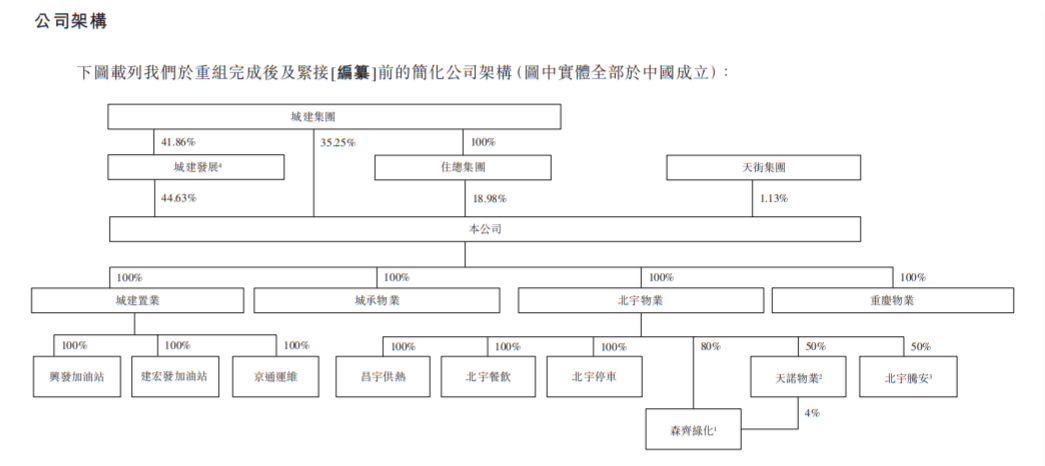 城建集团为隶属于北京市人民政府的国有全资企业,主要从事授权进行国有资产经营管理、承担各类型工业、能源、交通、民用、市政工程建设项目总承包、承包境外工程项目及房地产开发等业务。城建发展(600266.SH)为城建集团的非全资附属公司。住总集团为一家全资国有有限公司,前身为于1983年5月成立的北京市住宅建设总公司。天街集团为由北京市东城区人民政府国有资产监督管理委员会及北京市财政局分别持有90%及10%的国有全资企业。城建集团、城建发展、住总集团为京城佳业控股股东,分别持有该公司26.44%、33.47%及14.24%股份。同时,香港一家投资公司与广联达(002410.SZ)旗下公司为京城佳业基石投资者,分别持有5.30%、3.37%股份。