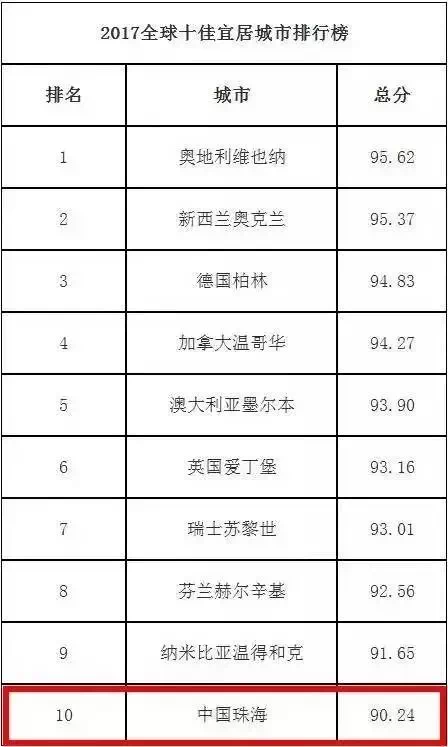 全国再没几个城市比得上了 珠海又叒叕入选全球十佳宜居城市