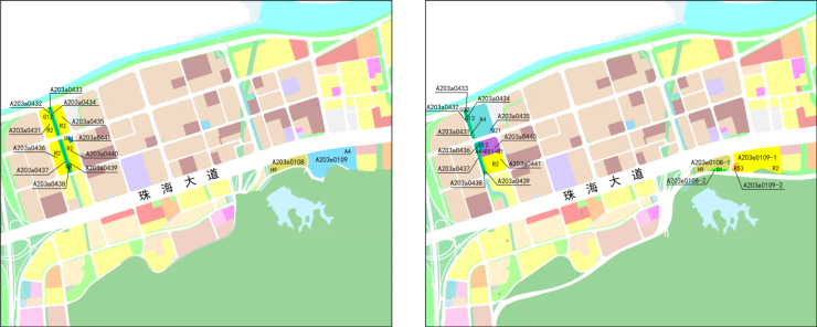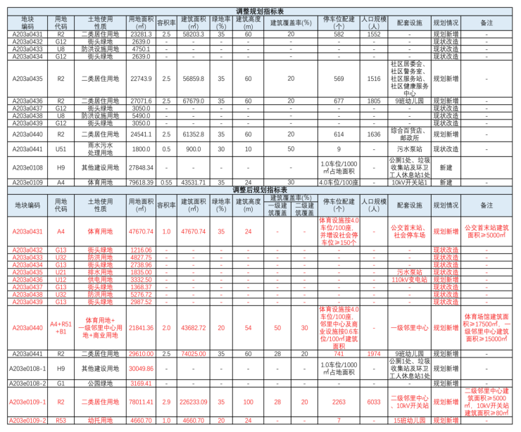 如下图所示,该规划批示前,曾拟在A203a04管理单元设居住用地,体育用地设在A203e01管理单元;经过修改过后,体育用地改设在了地块方正的A203a04管理单元,而居住用地则改设在了南屏水库北面的A203e01管理单元。