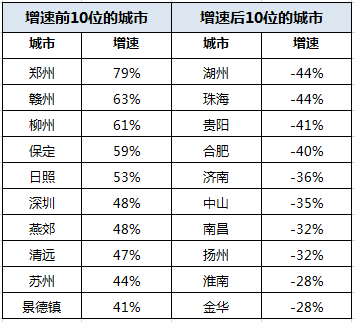 易居研究院智库中心研究总监严跃进分析称,“库存上升有不同的原因。其中对于郑州、赣州、柳州等城市而言,库存增速较高,和市场交易相对疲软有关。而对于深圳、苏州等城市而言,当前推盘总体积极活跃,容易带动库存上升。从增速的下降情况看,包括湖州、珠海等市场交易都不错,库存下降速度较为明显。”