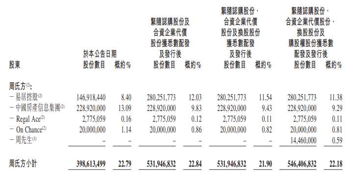 交易完成后,周忻持有易居22.84%股权,仍保持排名前列大股东的地位;阿里持股比例为22.57%,为易居第二大股东;云锋基金持股比例为2.86%。